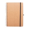 Carnet de notes à spirales recouvert de liège naturel avec insert en paille de blé pour téléphone portable et porte-tablette. Carnet de 70 feuilles lignées en papier kraft recyclé, dragonne en caoutchouc et porte-stylo. Format A5. Matieres : : Liège , Paille de blé , Papier recyclé , Caoutchouc , Plastique – .