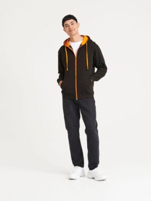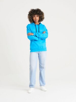 Coupe décontractée. Capuche doublée. Poche kangourou. Cordons de serrage ronds. Liseré côtelé aux poignets et à l’ourlet. Polaire intérieure brossée. Double surpiqûre.