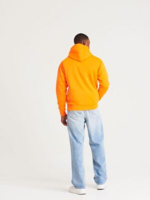 Coupe décontractée. Capuche doublée. Poche kangourou. Cordons de serrage ronds. Liseré côtelé aux poignets et à l’ourlet. Polaire intérieure brossée. Double surpiqûre.