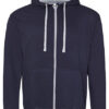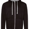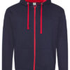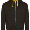 Coupe standard. Sweat à capuce zippé. Fermeture éclair YKK en plastique contrastée. Capuche doublée en tissu avec intérieur contrasté. Cordon plat de couleur contrastée. Poches kangourou. Polaire intérieure brossée.