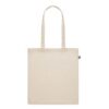 Sac shopping en coton recyclé post-consommation (65% coton recyclé, 35% coton ordinaire) avec longues poignées. 140 gr/m².