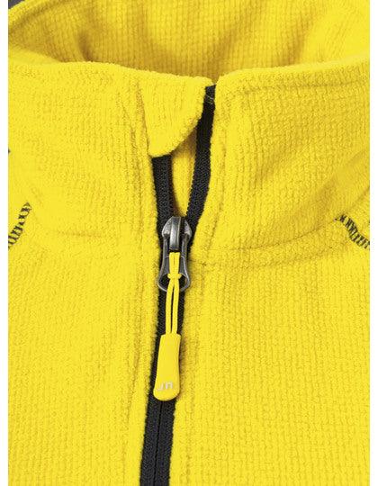 Veste d’extérieure légère en polaire. Qualité agréablement souple. Face extérieure légèrement structurée, lisse à l’intérieur. Col montant. Fermeture à glissière inférieure en continu avec mentonnière. 2 poches latérales zippées.
