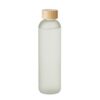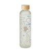 Bouteille en verre avec revêtement spécial pour la sublimation et couvercle en bambou. Capacité : 650 ml. Le bambou est un produit naturel, et présente de légères variations de couleur, de décoration et de tailles.