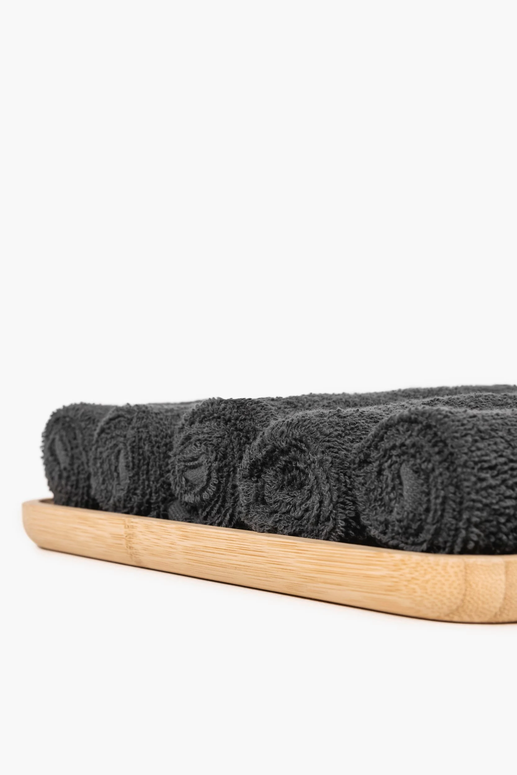 100% coton. Maille bouclette. Lot de 5 serviettes. Dimensions : 30 x 30 cm. Etiquettes de marque détachables.