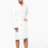 100% coton biologique. Maille Terry. Toucher agrĂ©able et doux. Grande capuche. 2 poches cĂ´tĂ© plaquĂ©es avec surpiqĂ»re de renfort en haut de poches. Ceinture avec passants. Lien d’accrochage dans le col. Finition double aiguille bord capuche, bas de manches et de vĂŞtement. Finition tubulaire Ă l’ourlet bas et bas de manche.