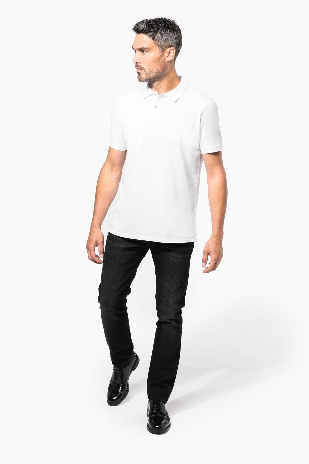 100% coton. Maille piquée en coton Supima®. Tissu d’une extrême finesse et qualité. Toucher soyeux et agréable. Coupe ajustée. Col en bord-côte avec bande de propreté fantaisie et contrastée. Patte 2 boutons en nacre véritable. Finition couture fantaisie au bas de vêtement et bord-côte au bas de manche. Pas d’étiquette de marque au col, uniquement une puce de taille pour faciliter la personnalisation.