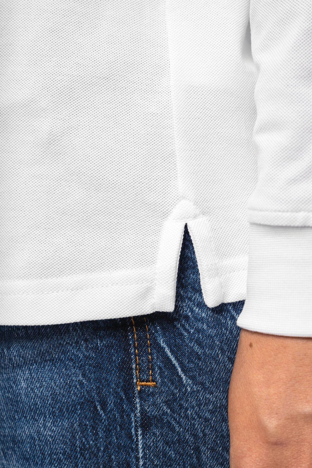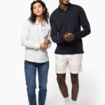 100% coton biologique. Coton peigné. Maille piquée. Coupe ajustée. Lavé aux enzymes. Manches longues. Coutures côtés. Col et poignet en bord côte 1×1. Patte de boutonnage à 2 boutons ton sur ton. Bande de propreté en matière principale ton sur ton en finition intérieur de col. Renfort épaule. Fentes latérales. Finition double surpiqûres bas de vêtement. Pas d’étiquette de marque, uniquement une puce de taille déchirable pour faciliter la personnalisation.