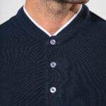 100% coton. (90% coton / 10% viscose pour coloris chiné). Maille piquée en coton peigné. Lavable à 60°C (40°C pour coloris chiné) Col style mao en bord-côte avec liseré contrasté. Patte de boutonnage 3 boutons contrastés. Bord-côte bas de manche. Finition double aiguille bas de vêtement.