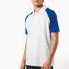100% coton piqué. Col bord-côte avec bande de propreté. Manches raglan contrastées avec piping contrasté Light Grey aux emmanchures. Patte de boutonnage à 2 boutons ton sur ton. Finitions double aiguille.