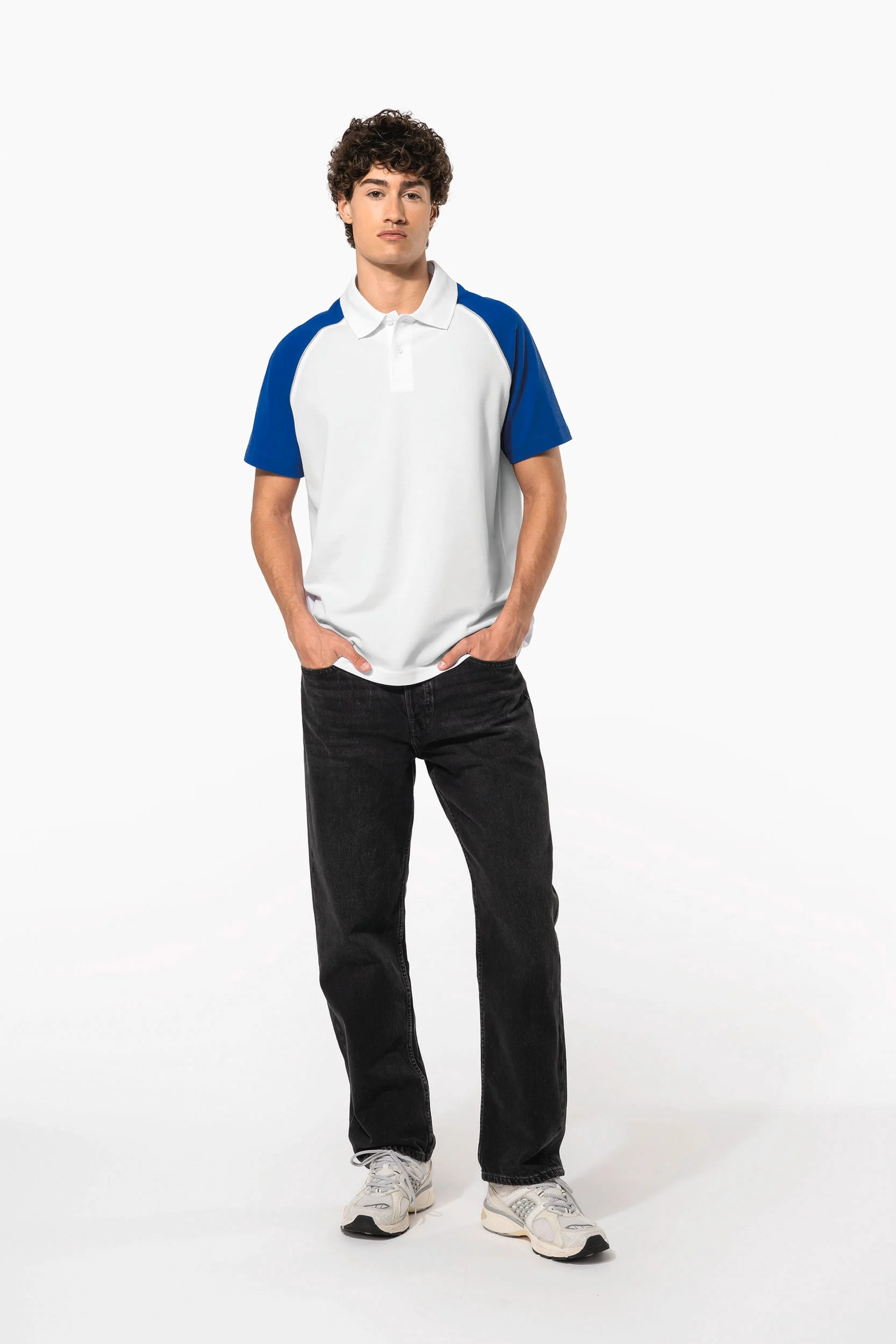100% coton piqué. Col bord-côte avec bande de propreté. Manches raglan contrastées avec piping contrasté Light Grey aux emmanchures. Patte de boutonnage à 2 boutons ton sur ton. Finitions double aiguille.