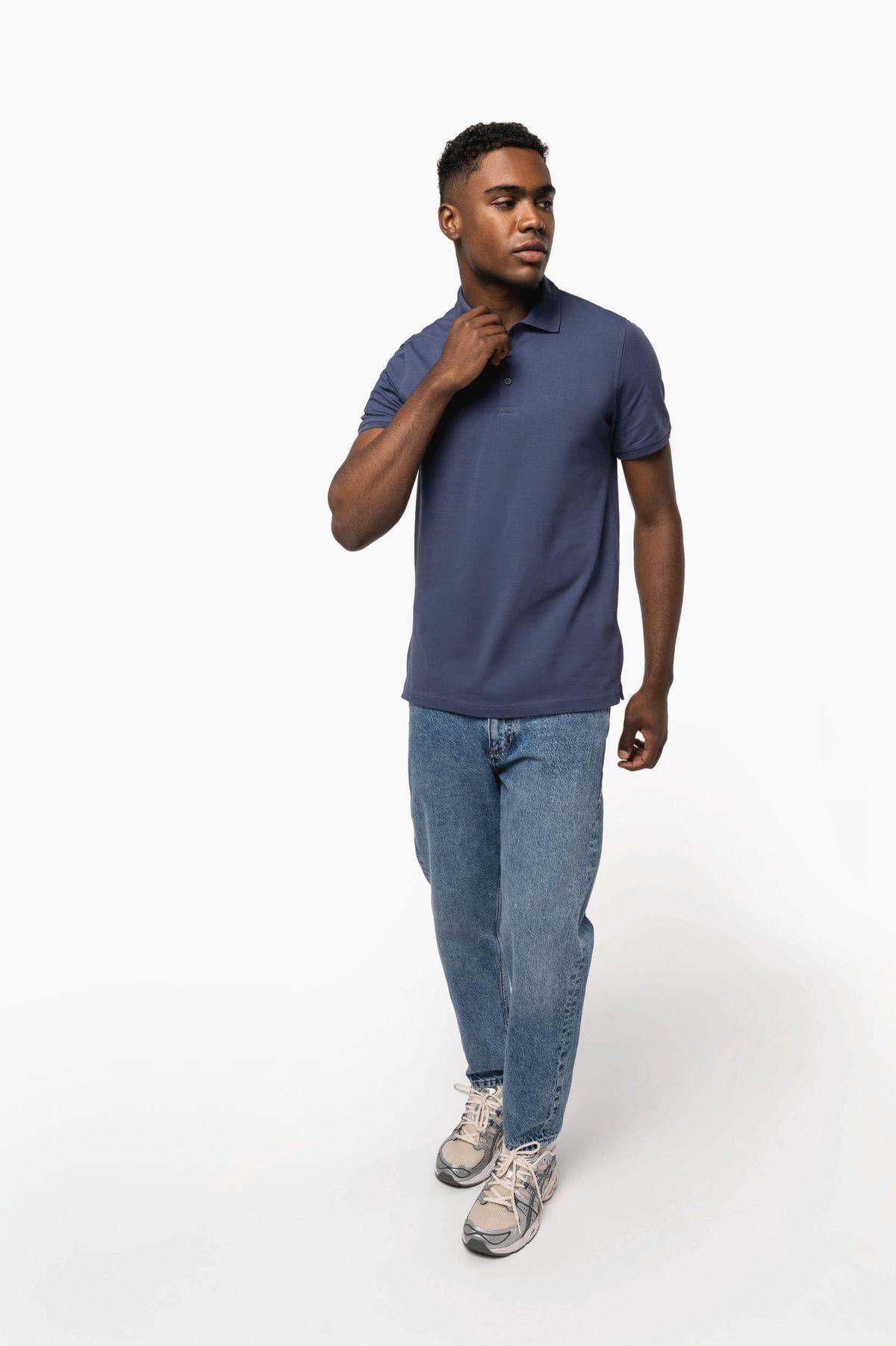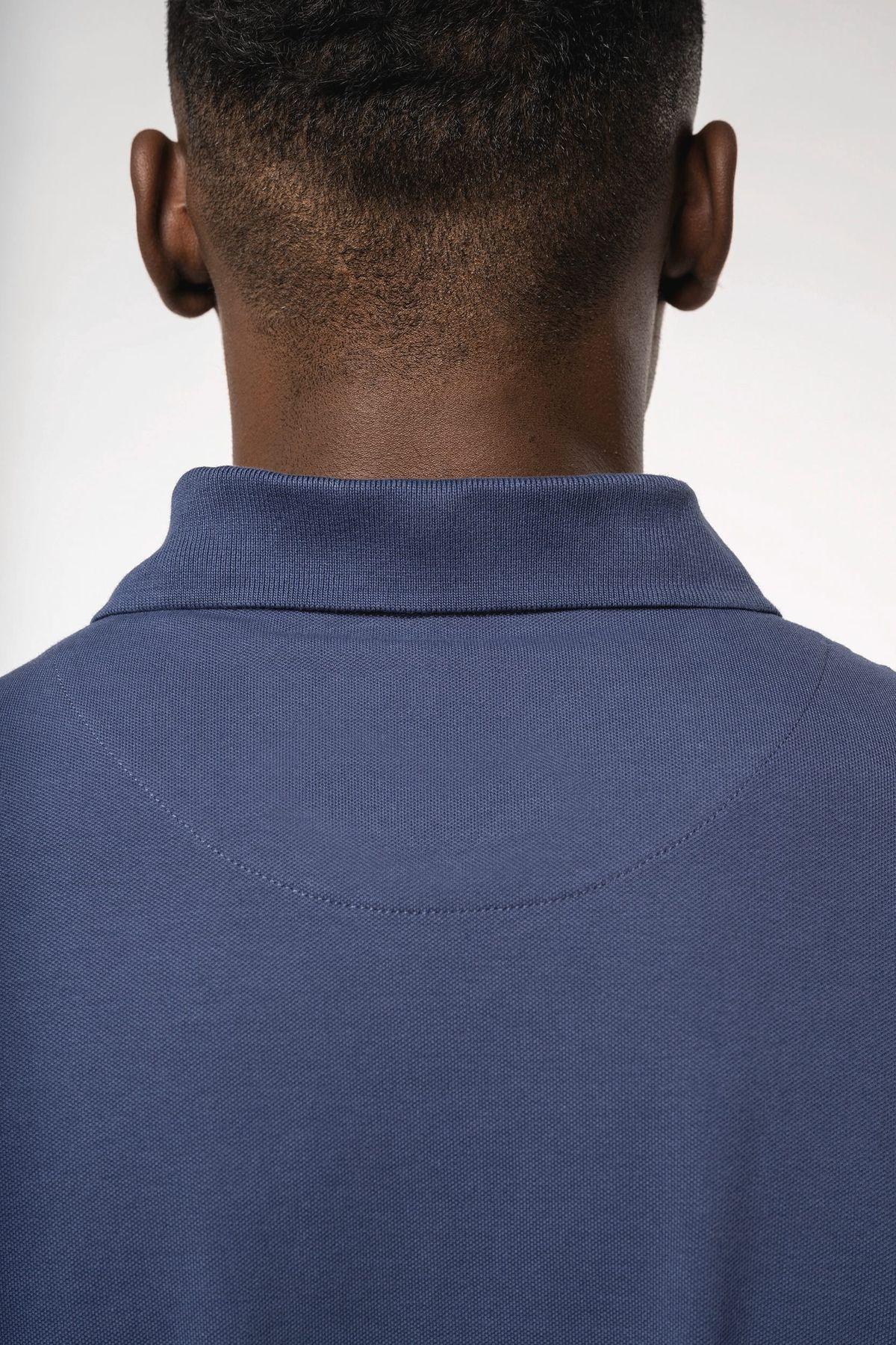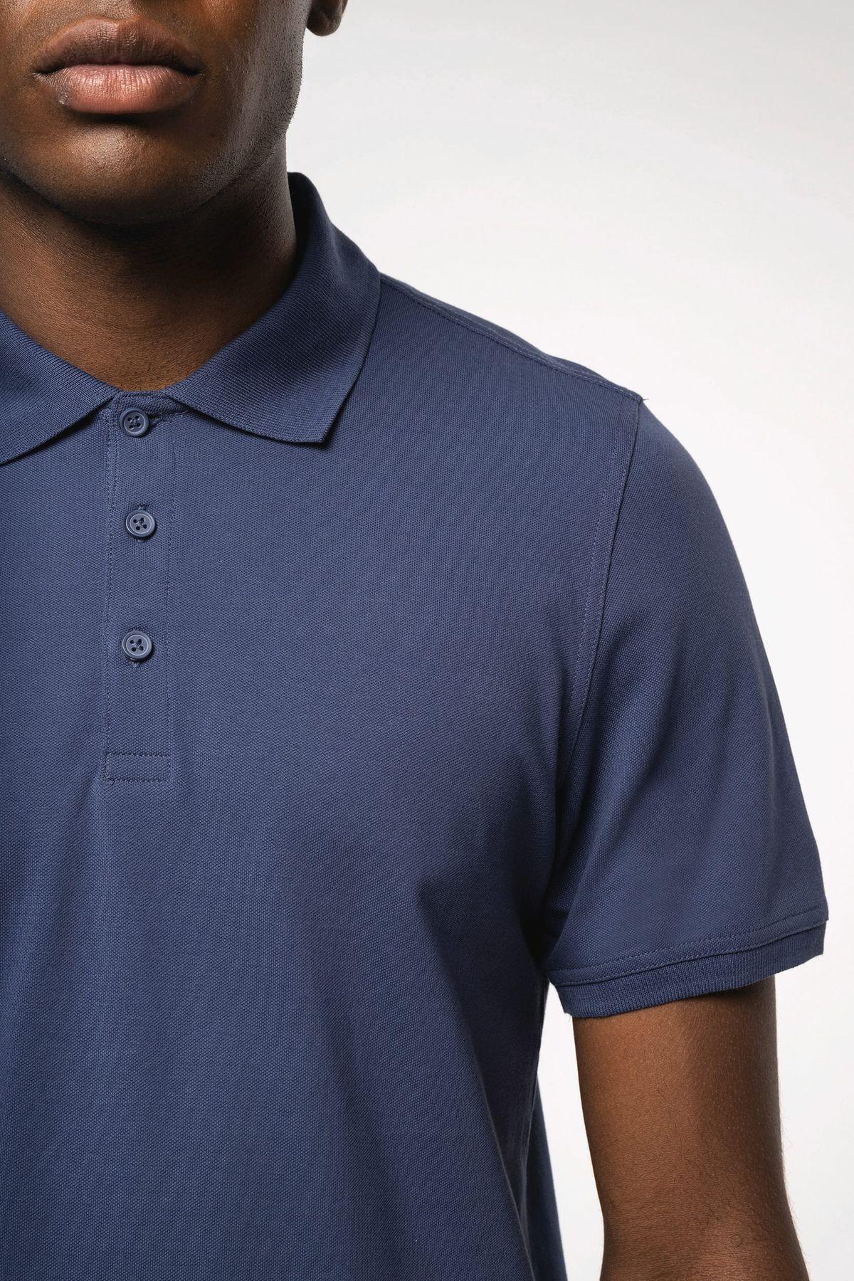 95% coton / 5% élasthanne. Maille piquée. Col avec bord-côte et bande de propreté. Patte de boutonnage avec 3 boutons. Finition bord-côte au bas des manches. Petites fentes latérales et finition double aiguille au bas du vêtement.