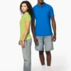 Coloris unis : 100% coton – lavable à 60°C. Coloris Oxford Grey : 90% coton/ 10% viscose – lavable à 40°C. Coton peigné maille piquée. Col en bord-côte. Bande de propreté encolure et fentes côté contrastée Dark Grey pour le polo Oxford Grey et Oxford Grey pour tous les autres coloris. Finition double aiguille bas de vêtement. Patte de boutonnage col 3 boutons. Bord-côte bas de manche.
