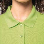 Coloris unis : 100% coton – lavable à 60°C. Coloris Oxford Grey : 90% coton / 10% viscose – lavable à 40°C. Coton peigné maille piquée. Col en bord-côte. Bande de propreté encolure et fentes côté contrastée Dark Grey pour le polo Oxford Grey et Oxford Grey pour tous les autres coloris. Finition double aiguille bas de vêtement. Patte de boutonnage col 2 boutons. Bord-côte bas de manche.