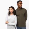 Coloris unis : 100% coton – lavable à 60°C. Coloris Oxford Grey : 90% coton / 10% viscose – lavable à 40°C. Coton peigné maille piquée. Col en bord-côte. Bande de propreté encolure et fentes côté contrastée Dark Grey pour le polo Oxford Grey et Oxford Grey pour tous les autres coloris. Finition double aiguille bas de vêtement. Patte de boutonnage 3 boutons. Poignets en bord-côte.