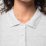 Coloris unis : 100% coton – lavable à 60°C. Coloris Oxford Grey : 90% coton / 10% viscose – lavable à 40°C. Coton peigné maille piquée. Col en bord-côte. Bande de propreté encolure et fentes côté contrastée Dark Grey pour le polo Oxford Grey et Oxford Grey pour tous les autres coloris. Finition double aiguille bas de vêtement. Patte de boutonnage col 2 boutons.