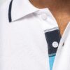 100% coton piqué. Col en bord-côte : liserés dessus et dessous de col contrastés (sauf White/ Navy : pas de contraste sous le col, seulement un liseré fin rouge sous la patte de boutonnage). Bande de propreté contrastée à l’encolure et aux fentes côtés. Patte de boutonnage col avec dessous fantaisie et 2 boutons. Bord-côte avec liseré contrasté au bas de manches. Finition double aiguille au bas du vêtement. Le col, renforcé à l’arrière, peut se porter relevé ou baissé.