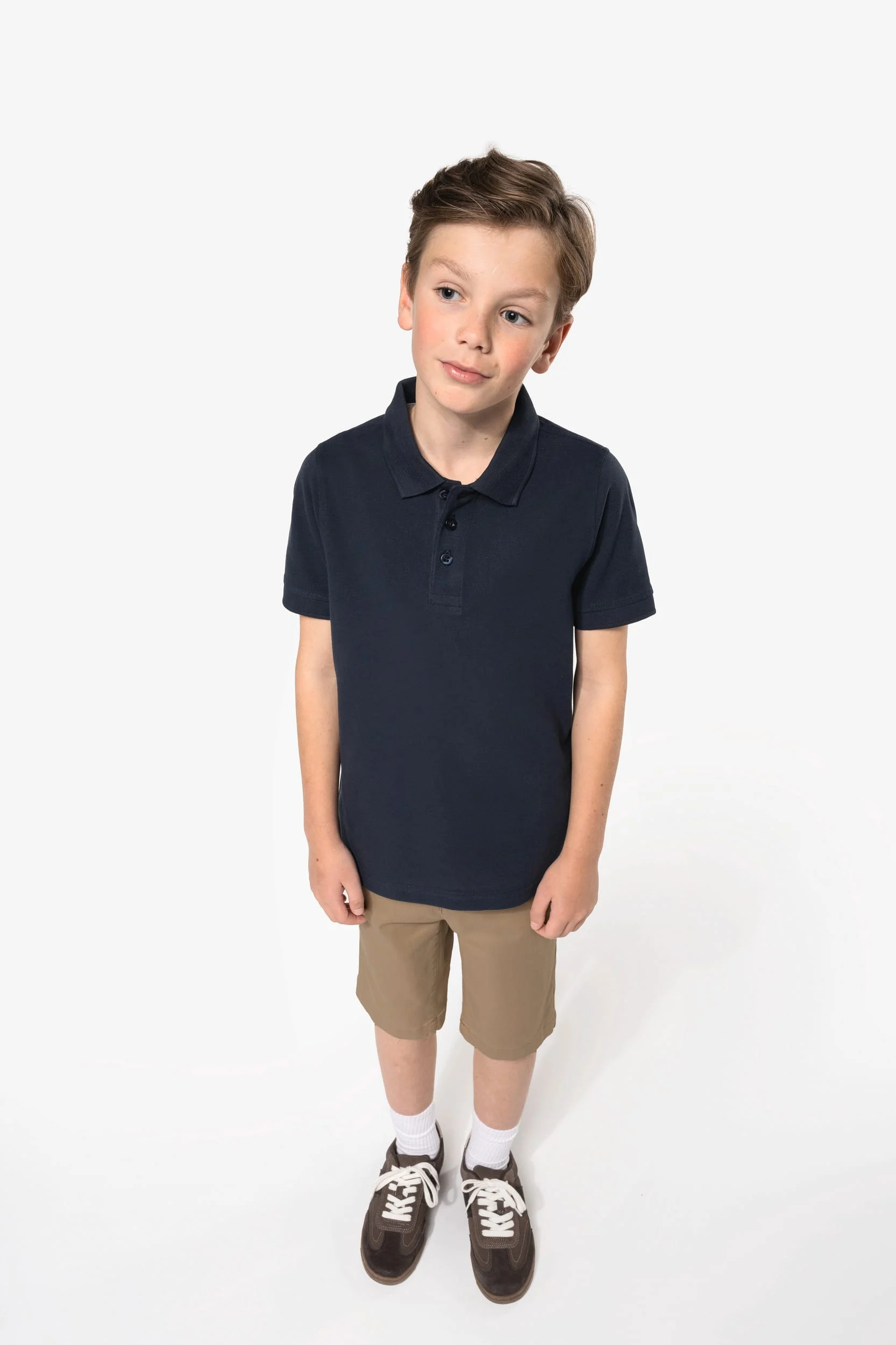 100% coton piqué. Lavable à 60°. Bord-côte au col et bas de manches. Patte de boutonnage col 3 boutons. Bande de propreté contrastée encolure et fentes côtés. Finition double aiguille bas de vêtement.