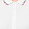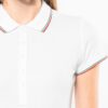 100% coton piqué. Patte de boutonnage col 5 boutons. Bande de propreté contrastée encolure et fentes côtés. Finitions bord-côte avec liserés contrastés col et bas de manches. Double aiguille bas de vêtement.