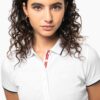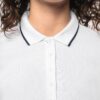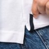 100% coton piqué. Col en bord-côte : liserés dessus et dessous de col contrastés (sauf White : pas de contraste sous le col). Bande de propreté contrastée à l’encolure et aux fentes côtés. Patte de boutonnage col fantaisie 5 boutons. Bord-côte avec liseré contrasté au bas de manches. Finition double aiguille au bas du vêtement. Le col, renforcé à l’arrière, peut se porter relevé ou baissé.