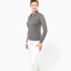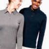 100% coton (Grey Heather : 65% polyester / 35% coton – Oxford Grey : 90% coton / 10% viscose). Maille jersey en coton peigné. Col chemise. Patte de boutonnage col 4 boutons métal. Empiècement épaule. Poignet en bord-côte. Double aiguille bas de vêtement.