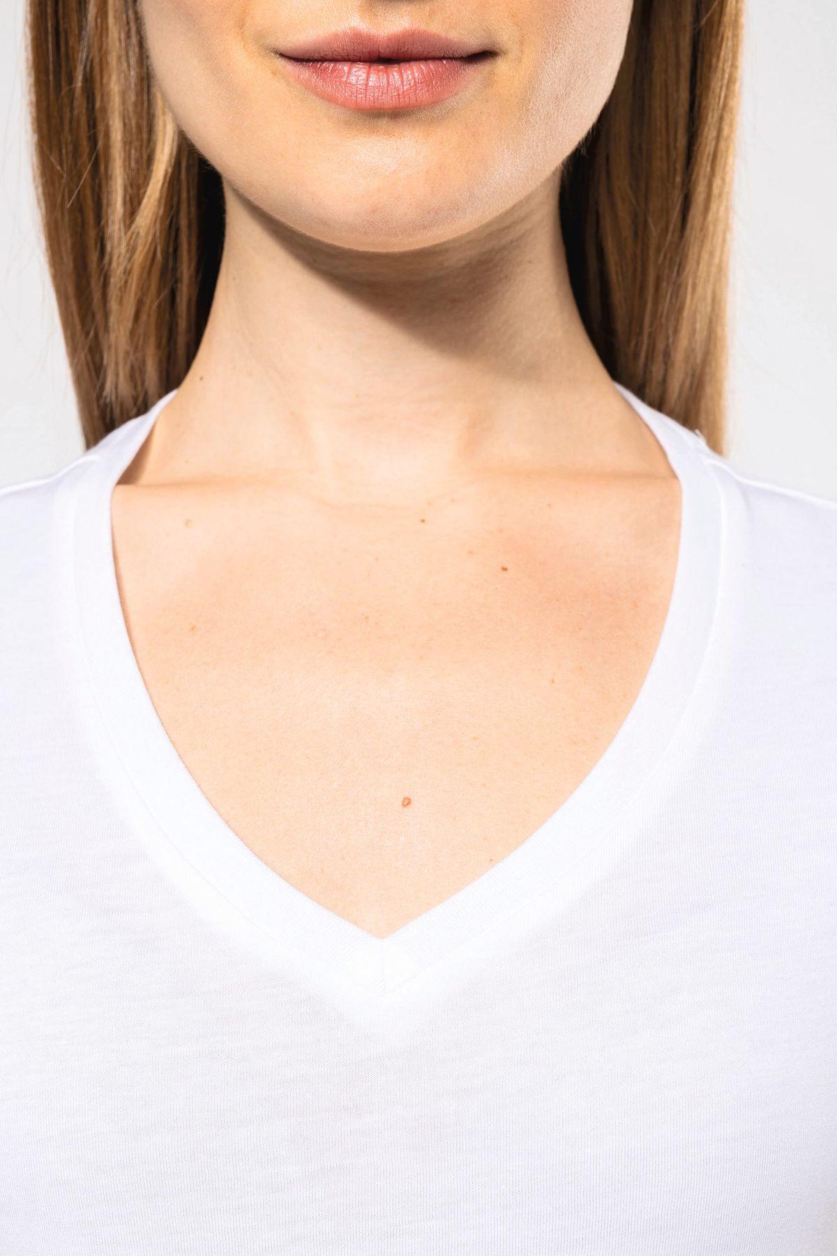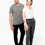 100% coton. Maille jersey en coton Supima®. Tissu d’une extrême finesse et qualité. Toucher soyeux et agréable. Coupe cintrée. Encolure en V avec bande de propreté ton sur ton. Finitions coutures fantaisies sur bas de manches et bas de vêtement. Pas d’étiquette de marque au col, uniquement une puce de taille pour faciliter la personnalisation.