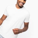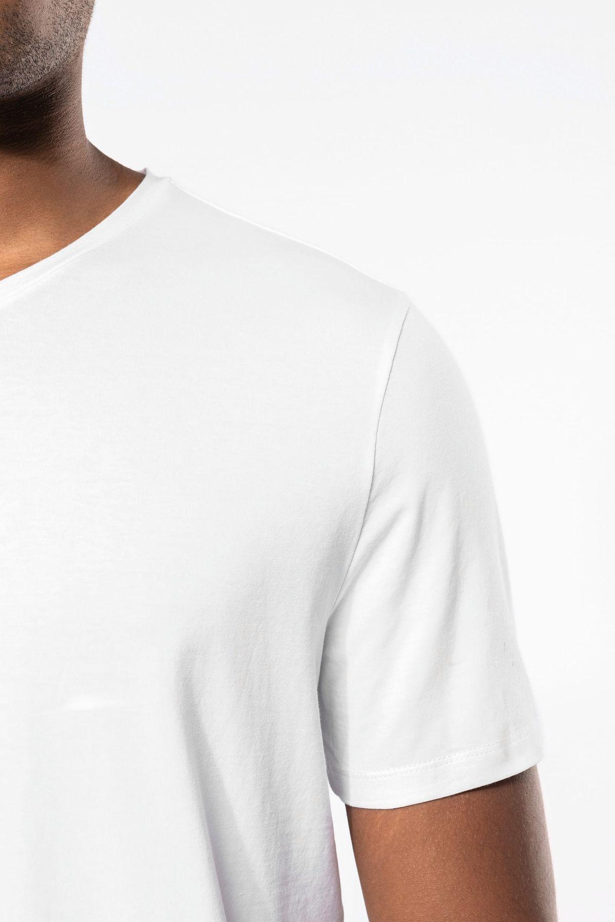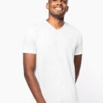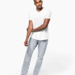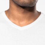 97% coton / 3% élasthanne. Coloris chinés 87% Coton / 9% Viscose / 4% Élasthanne. Encolure en V. Finition double aiguille bas de manche et bas de vêtement. Avec sa coupe moderne et près du corps, il se rapproche des standards du prêt à porter.
