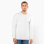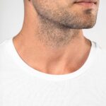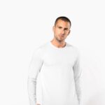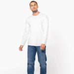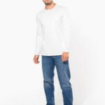 97% coton / 3% élasthanne. Coloris chinés 87% Coton / 9% Viscose / 4% Élasthanne. Encolure ronde. Finition double aiguille bas de manche et bas de vêtement. Avec sa coupe moderne et près du corps, il se rapproche des standards du prêt à porter.
