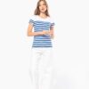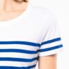 100% coton biologique. Coupe droite. Lavage aux enzymes. Encolure ronde avec bord-côte 1×1. Rayures tricotées. Bande de propreté au col. Finition double aiguille bas de manches et bas de vêtement. Pas d’étiquette de marque pour faciliter la personnalisation.