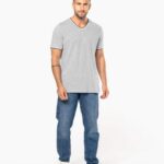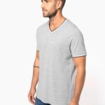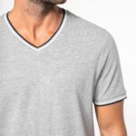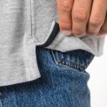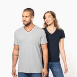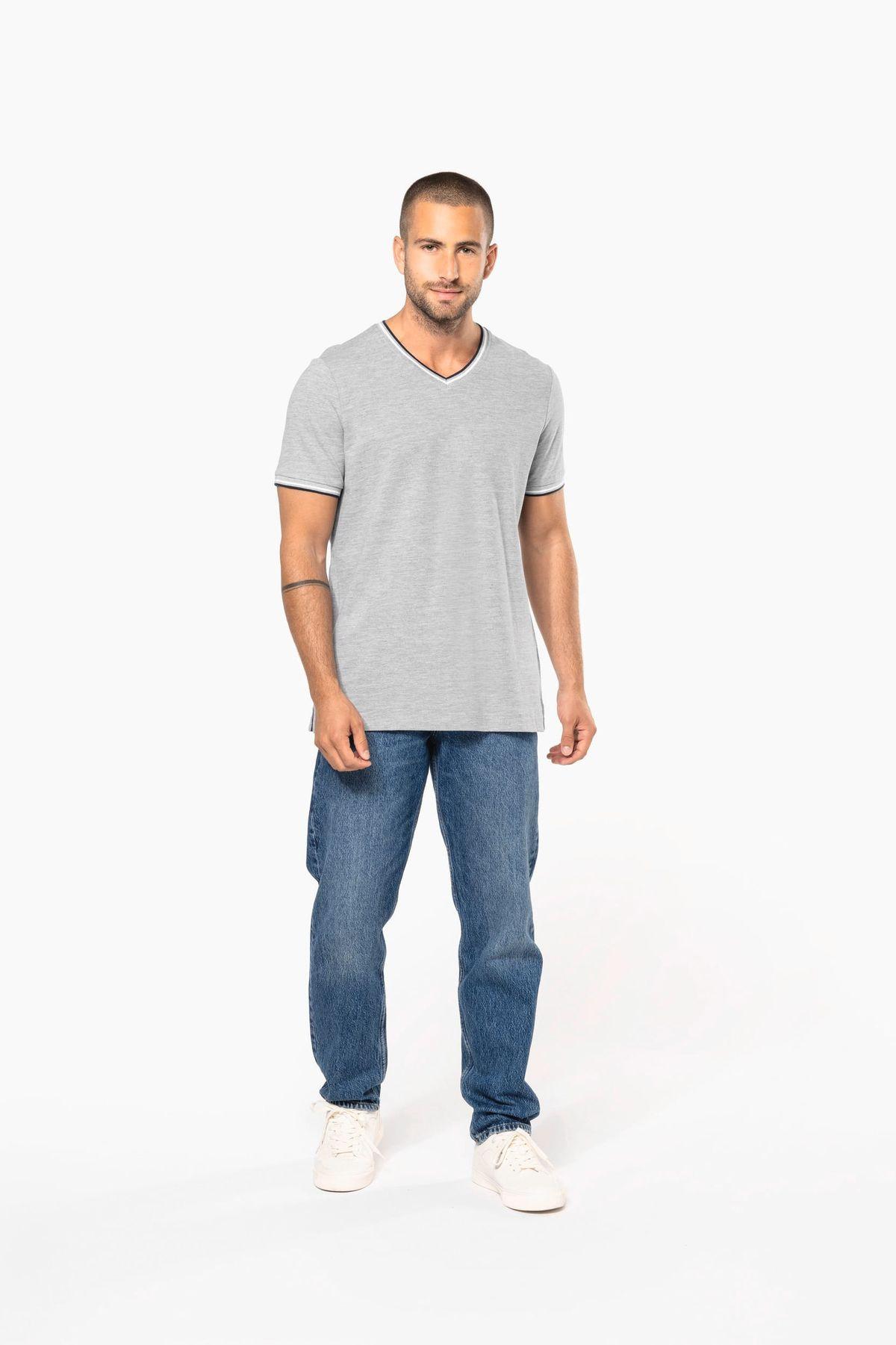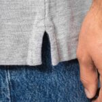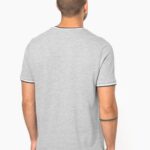 100% coton (90% coton / 10% viscose pour coloris chiné). Maille piquée en coton peigné. Finitions bord-côte avec rayures contrastées au col et bas de manches. Bande de propreté encolure et fentes latérales contrastées. Finition double aiguille au bas du vêtement.