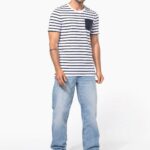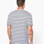 K378 – T-shirt rayé marin avec poche manches courtes homme
