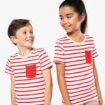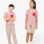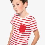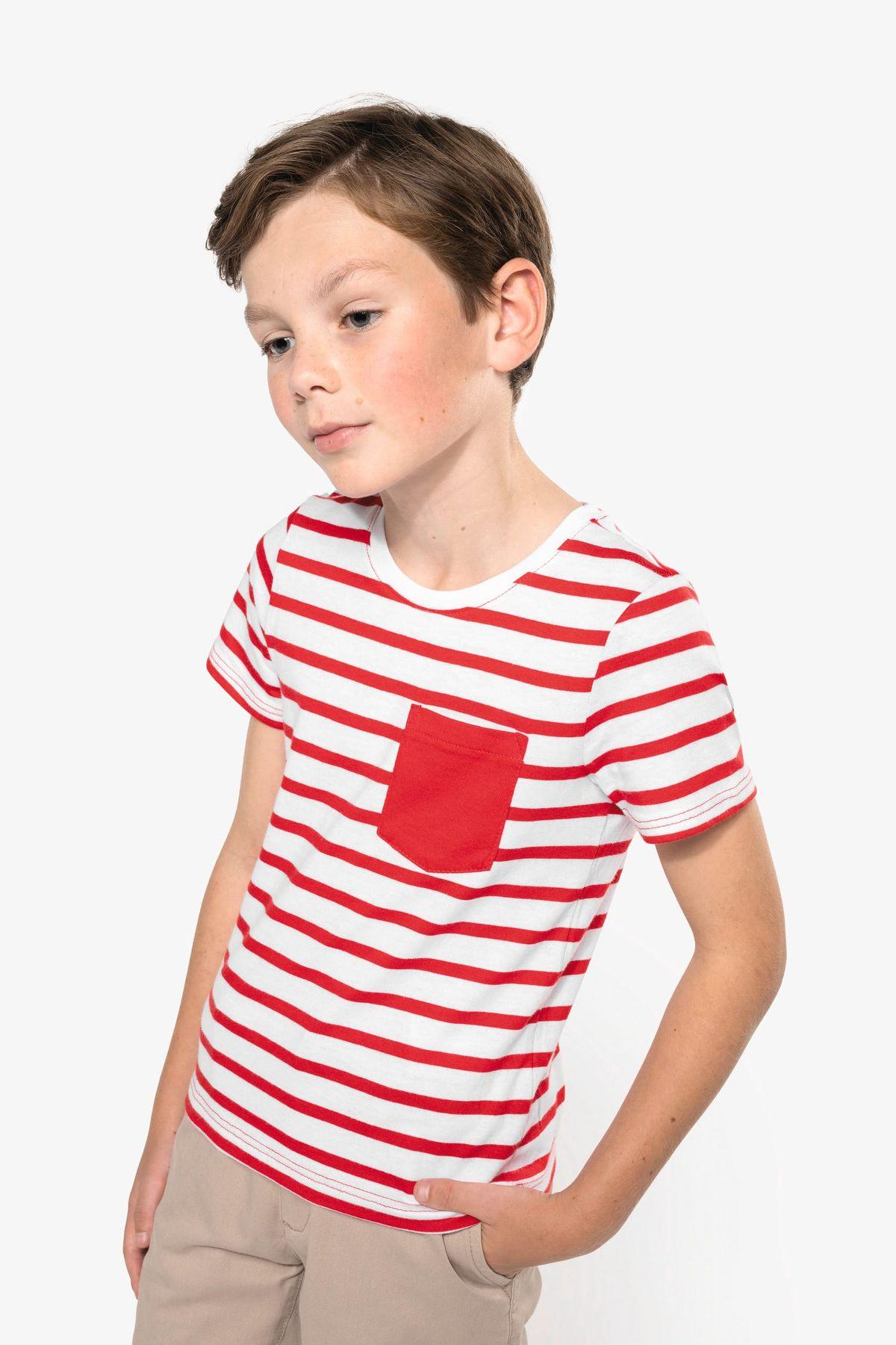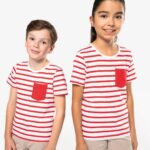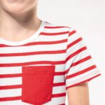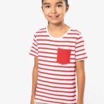 K379 – T-shirt rayé marin avec poche manches courtes enfant
