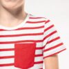 100% coton. Maille jersey en coton peigné. Toucher doux. Encolure ronde en bord-côte. Poche poitrine contrastée côté coeur. Bande de propreté col contrastée. Finition double aiguille bas de manches et bas de vêtement.