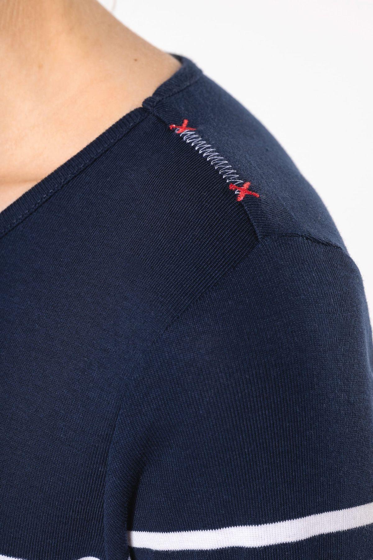 100% coton côte 1×1. Encolure ronde. Point fantaisie sur l’épaule. Fentes latérales.