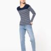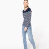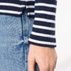 100% coton côte 1×1. Encolure ronde. Point fantaisie sur l’épaule. Fentes latérales.