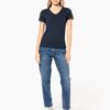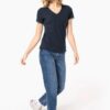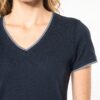 100% coton (90% coton / 10% viscose pour coloris chiné). Maille piquée en coton peigné. Finitions bord-côte avec rayures contrastées au col et bas de manches. Bande de propreté encolure et fentes latérales contrastées. Finition double aiguille au bas du vêtement.
