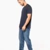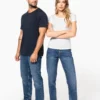 Coloris Unis : 100% coton biologique. Coloris Ocean Blue Heather : 80% coton biologique / 20% polyester. Encolure ronde avec bords francs. Finitions double aiguille bas de manches et de vêtement. Pas d’étiquette de marque au col, uniquement une puce de taille pour faciliter la personnalisation.