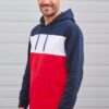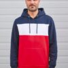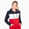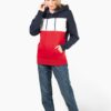 80% coton / 20% polyester. Surface extĂ©rieure 100% coton peignĂ©. Molleton grattĂ© 3 fils. LSF (Low shrinkage fleece). Lavage aux enzymes. Coupe ajustĂ©e. Sweatshirt capuche tricolore avec bande blanche centrale sur toutes les couleurs. Finition bords cĂ´te 1×1 bas de manche et bas de vĂŞtement en tubulaire pour une meilleure finition, avec surpiqĂ»re. Poche kangourou avec double surpiqĂ»re. Capuche Ă  plis avec Ĺ“illet et embouts cordons en mĂ©tal, avec cordons de serrage ronds. Bande de propretĂ© en chevrons ton sur ton. PrĂ©sence d’élasthanne sur bas de manches et de vĂŞtement pour Ă©viter que le vĂŞtement se dĂ©forme. Demi-lune au dos pour faciliter la personnalisation. Etiquette de marque au col ainsi qu’une puce de taille dĂ©chirables pour faciliter la personnalisation.