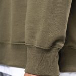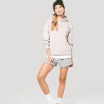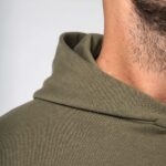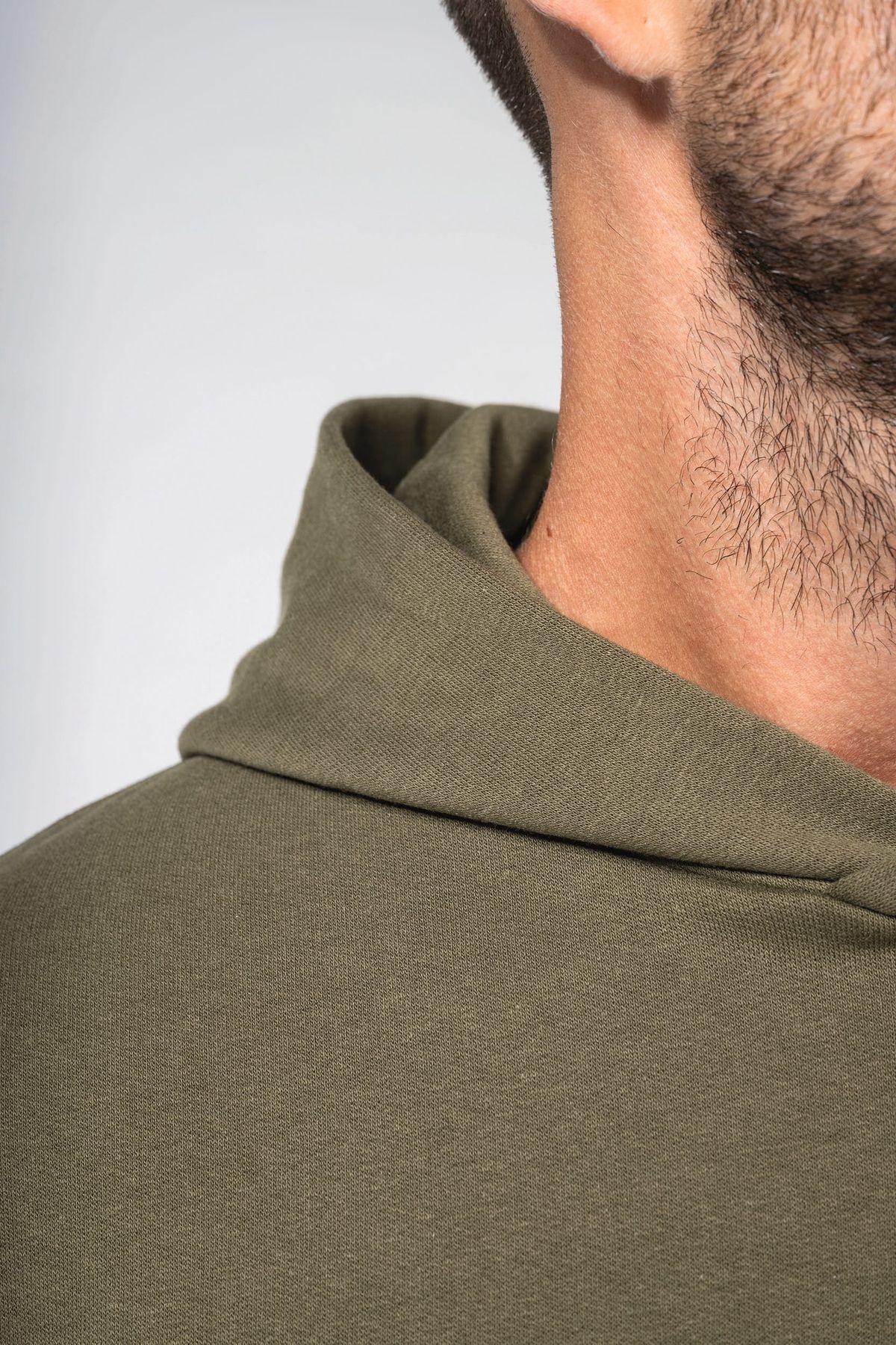 80% coton / 20% polyester. Coupe oversize avec épaules tombantes. Molleton gratté. Coton cardé. Bord côte 2×1 finition tubulaire pour une meilleure finition au bas de manches et de vêtement. Poche cachée avec zip invisible dans la couture côté droit au porté. Capuche avec pince doublée en coton. Présence d’élasthanne dans le bord côte bas de manche et de vêtement pour éviter que le vêtement se déforme. Bande de propreté en chevron ton sur ton. Demi-lune intérieur col. Finition double surpiqûre à cheval sur bas de manches et de vêtement. Pas d’étiquette de marque au col, uniquement une puce de taille pour faciliter la personnalisation.