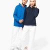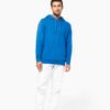 80% coton / 20% polyester. Tissu molleton gratté LSF 3 fils (Low Shrinkage Fleece) avec traitement antiboulochage. Fabriqué au Portugal. Coupe straight. Montage coupé cousu. Bord-côte 1×1 montage tubulaire pour une meilleure finition au bas de manches et de vêtement. Poche kangourou. Capuche doublée 100% coton jersey avec cordon de serrage plat œillets boutonnières. Finition demi-lune intérieur col. Finition double aiguille sur bas de manches, bas de vêtement. Pas d’étiquette de marque au col, uniquement une puce de taille pour faciliter la personnalisation.