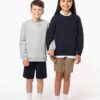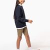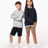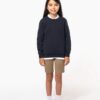 80% coton / 20% polyester. Coton peigné. Tissu molleton gratté 3 fils LSF (Low Shrinkage Fleece) avec traitement antiboulochage. Fabriqué au Portugal. Coupe ajustée. Col, bas de manches et de vêtement en bord-côte 1×1. Finition double surpiqûres sur épaules, emmanchures, bas de manches et de vêtement. Bande de propreté en jersey ton sur ton en finition intérieur de col. Demi lune au dos. Etiquette pour mentionner le prénom à intérieur du vêtement. Pas d’étiquette de marque au col, uniquement une puce de taille pour faciliter la personnalisation.