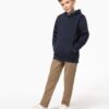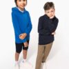 80% coton / 20% polyester. Coton peigné. Tissu molleton gratté 3 fils LSF (Low Shrinkage Fleece) avec traitement anti boulochage. Fabriqué au Portugal. Coupe ajustée. Bas de manches et de vêtement en bord-côte 1×1. Capuche doublée en coton jersey. Finition double surpiqûres sur épaule, emmanchures, bas de manches et de vêtement. Bande de propreté en jersey ton sur ton en finition intérieur de col. Poche kangourou. Demi lune au dos. Etiquette pour mentionner le prénom à intérieur du vêtement. Pas d’étiquette de marque au col, uniquement une puce de taille pour faciliter la personnalisation.