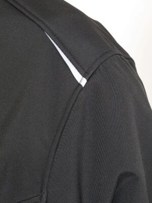 95% polyester / 5% élasthanne. Tissu contrecollé 3 couches respirant 1000 g/m²/ 24 h et imperméable 5000 mm. Extérieur : 95% polyester / 5% élasthanne. Intermédiaire : membrane respirante et micro-aérée. Couche intérieure : micropolaire antiboulochage. Manches raglan. Fermeture zippée. 2 poches zippées devant. 1 poche zippée poitrine côté droit. Capuche amovible avec cordon de serrage et fermeture auto-agrippante. Patte de serrage auto-agrippante au bas de manches. Zip invisible intérieur côté cœur pour accès personnalisation.
