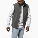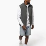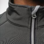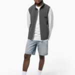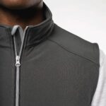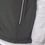 95% polyester / 5% élasthanne. Intérieur : 100% polyester micropolaire. Tissu déperlant. 2 poches extérieures zippées. Fermetures zippées contrastées. Finition surpiqûres aux épaules et côtés.