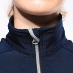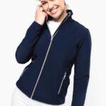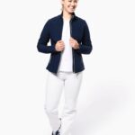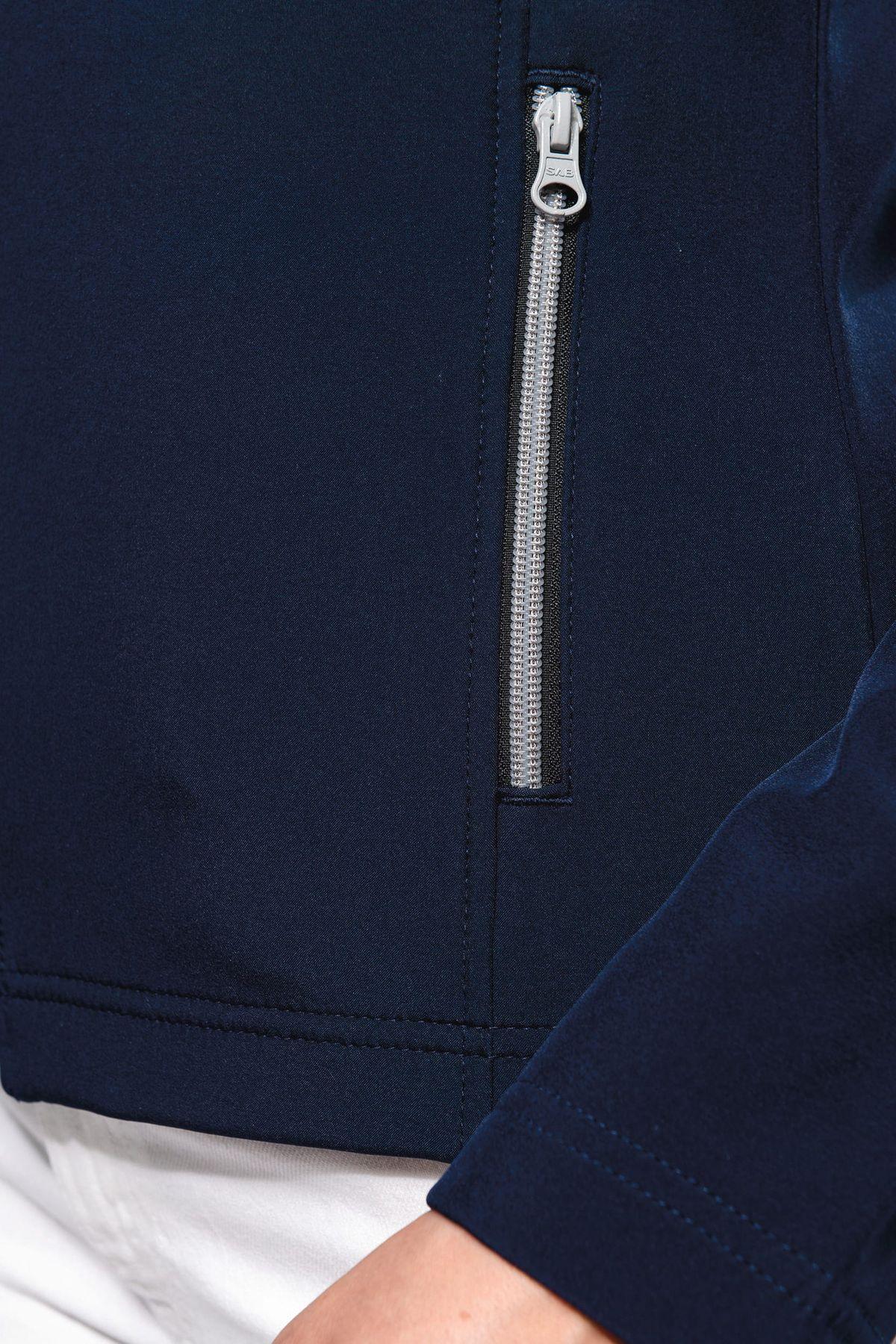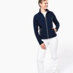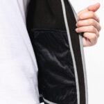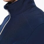 Extérieur : 95% polyester / 5% élasthanne. Intérieur : 100% polyester micropolaire. Tissu déperlant. Coupe cintrée. 2 poches extérieures zippées. Fermetures zippées contrastées. Dos rallongé. Finition surpiqûres aux épaules et côtés.