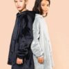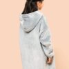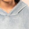 100% polyester. Coupe oversize aux épaules tombantes. Tissu double face, extérieur velours avec intérieur sherpa. Capuche croisée devant en deux panneaux avec finitions double surpiqûre. Manches longues avec poignet bord côte 1×1 doublé en finition tubulaire pour une meilleure finition. Présence d’élasthanne dans le bord côte bas de manche pour éviter que le poignet se déforme. Poche kangourou. Finition bas de vêtement double surpiqûre. Pas d’étiquette de marque au col, uniquement une puce de taille déchirable pour faciliter la personnalisation.