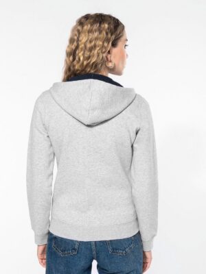 K467 – Sweat-shirt zippé capuche contrastée femme
