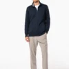 80% coton / 20% polyester. Coton peigné. Traitement LSF (Low Shrinkage Fleece) : molleton gratté et prérétréci. Lavage siliconé. Coupe droite par une découpe latérale en bord-côte. Intérieur col bord-côte avec rayures contrastées (Oxford Grey pour coloris White et White pour les autres coloris). Bande de propreté ton sur ton sauf pour coloris White : bande de propreté contrastée Oxford Grey. 2 poches devant. Finition bord-côte bas de manches et bas de vêtement. Fermeture zippée.