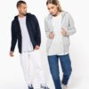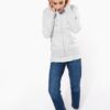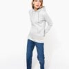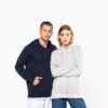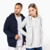 80% coton / 20% polyester (Ash Heather : 79% coton / 20% polyester / 1% viscose). Surface extérieure 100% coton peigné. Molleton gratté 3 fils LSF (Low Shrinkage Fleece). Bande de propreté contrastée à l’encolure (Navy pour le coloris Oxford Grey et Ash Heather ; Oxford Grey pour tous les autres coloris). Capuche doublée en nid d’abeille. Poches kangourou. Bord-côte bas de manches et de vêtement. Fermeture zippée.