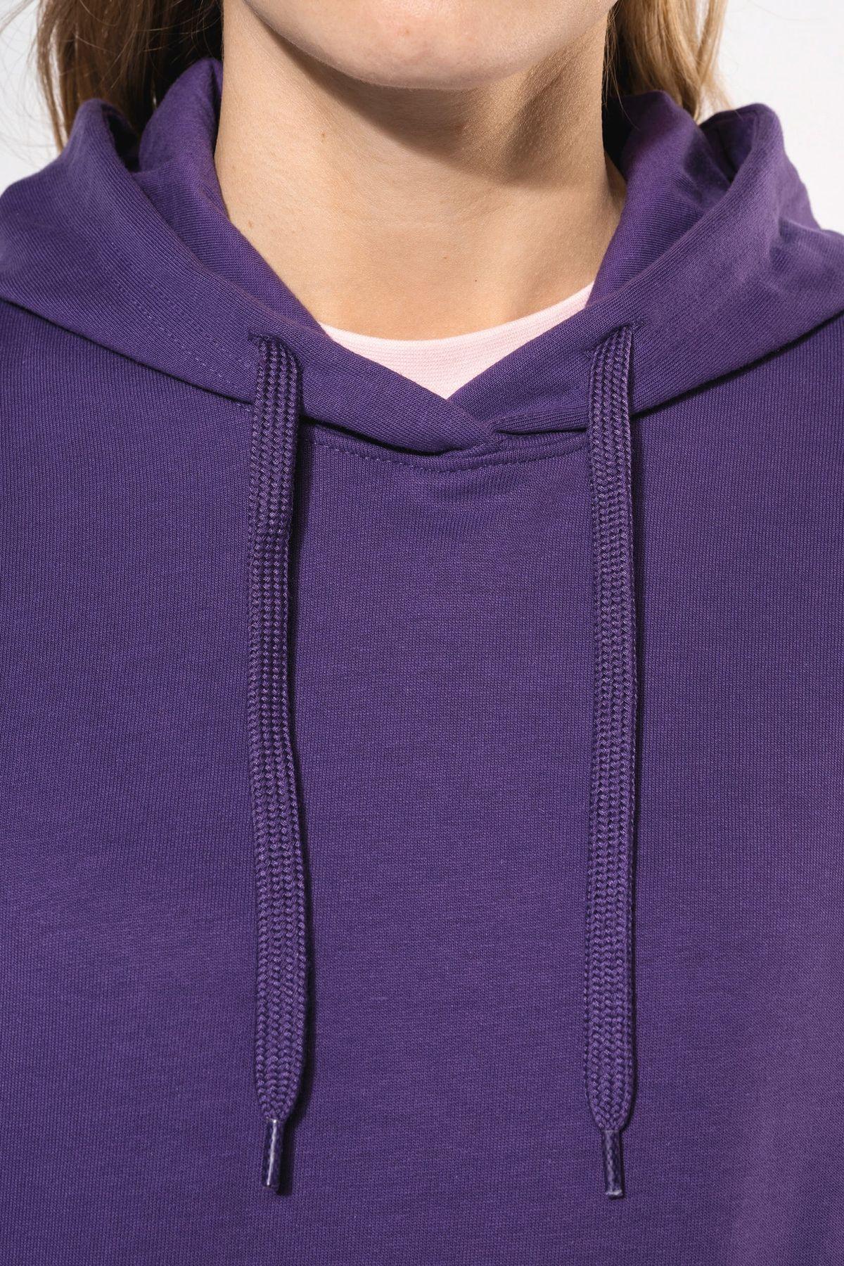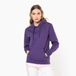 80% coton / 20% polyester. Coton peigné. Molleton gratté. Manches montées. Capuche doublée avec cordon de serrage ton sur ton. Poches Kangourou. Finition bord-côte bas de manches et de vêtement.