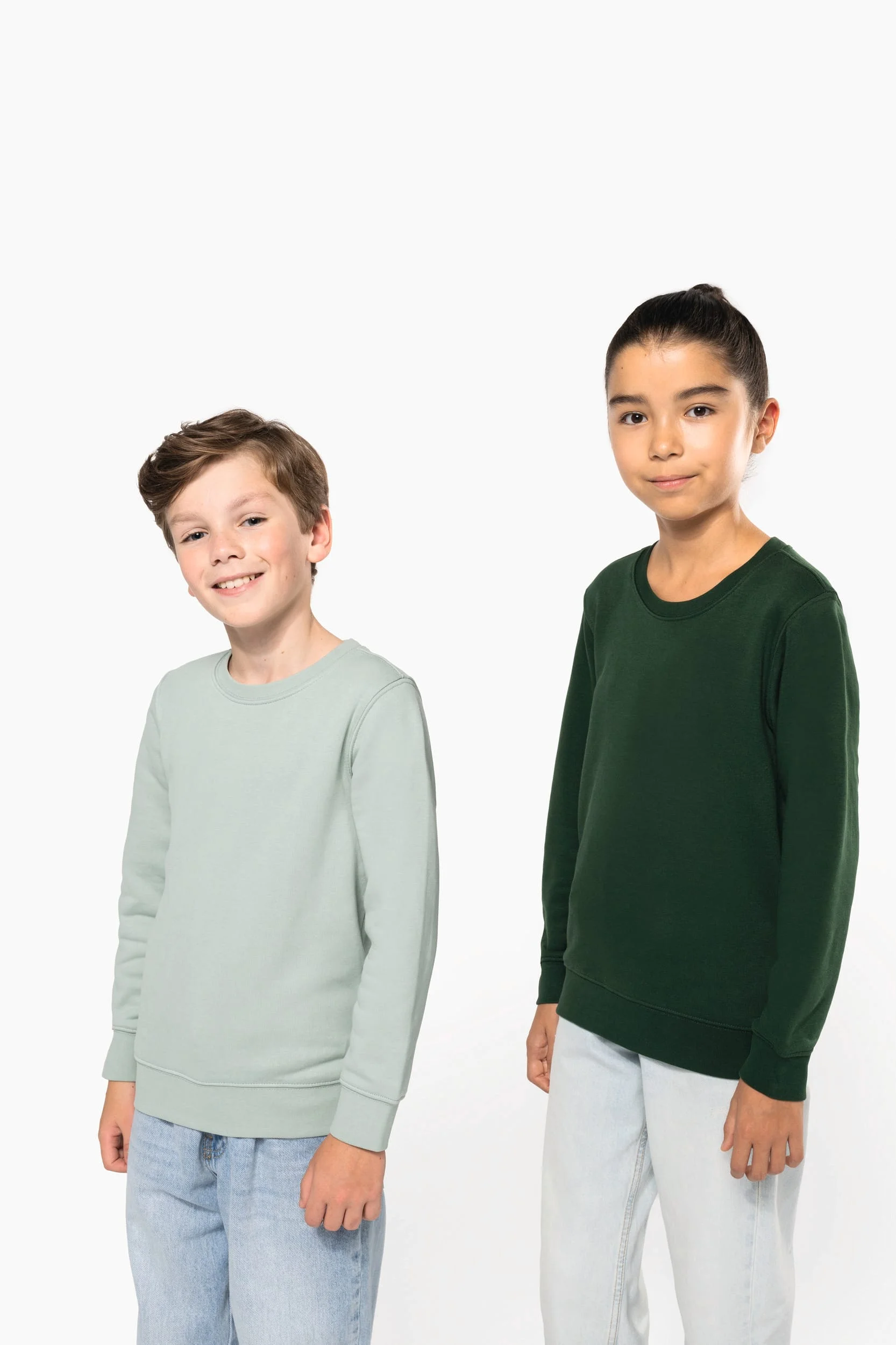 80% coton / 20% polyester. Coton peigné. Molleton gratté. Manches montées. Finition bord-côte encolure, bas de manches et de vêtement.